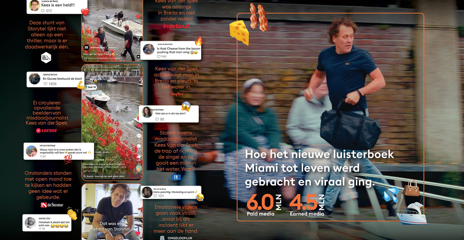 Storytel, de populaire streamingdienst voor luisterboeken en e-books, zocht een creatieve en engagerende manier om de nieuwe thriller ‘Miami’ van Kiki van Dijk te promoten. Dit was gericht op een breed publiek van zowel bestaande als potentiële klanten met interesse in het crime- en thrillergenre. Het viel Storytel op dat het lastig was om ‘earned media’ te behalen met (luister)boeken, omdat daar vaak vooral over geschreven wordt. Lastig? Misschien. Onmogelijk? Zeker niet. Let’s go.