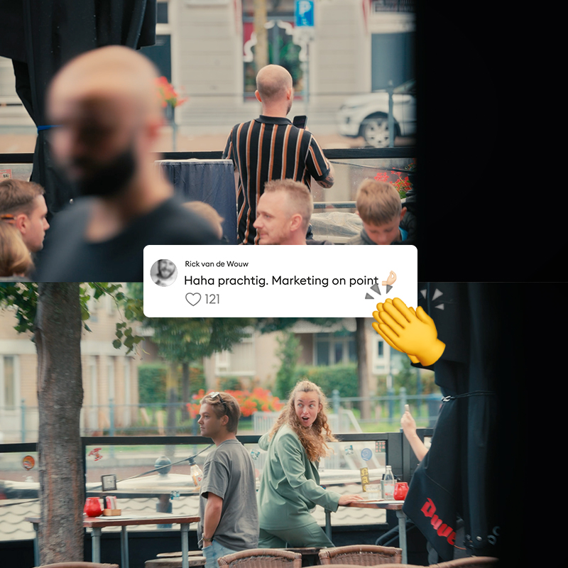 De keuze voor een earned-first aanpak was gedurfd, maar bij deze stunt moest alles in slechts twee minuten ‘live actie’ gebeuren. Zonder repetitie, zichtbare regie of tweede kans. We plaatsten verborgen camera’s om content te garanderen.